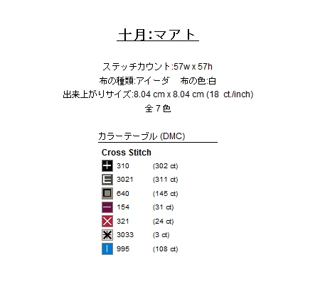 この図案はクロスステッチ作成用ソフト「KG-Chart」を使って作成しています。