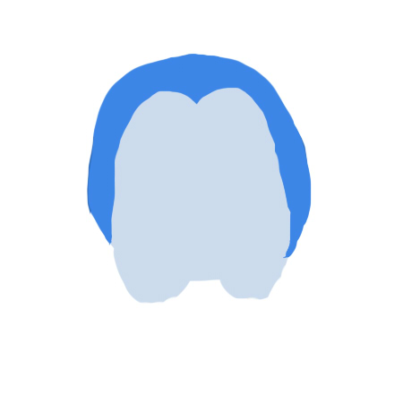 この影を描いたレイヤの「下のレイヤーでクリッピング」というチェックボックスにチェックを入れると、すぐ下のレイヤ、つまり最初に描いたペンギンの体からはみ出さないように影が描けるのでさらに楽です。