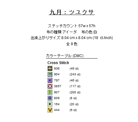 この図案はクロスステッチ作成用ソフト「KG-Chart」を使って作成しています。