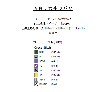 この図案はクロスステッチ作成用ソフト「KG-Chart」を使って作成しています。