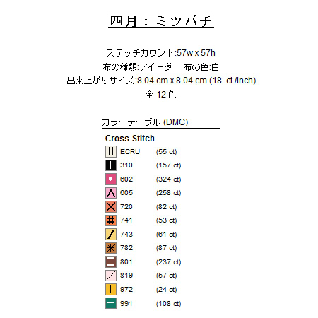毎月ひとつずつ、一年かけて十二個のクロスステッチの図案を作っていこうという企画。